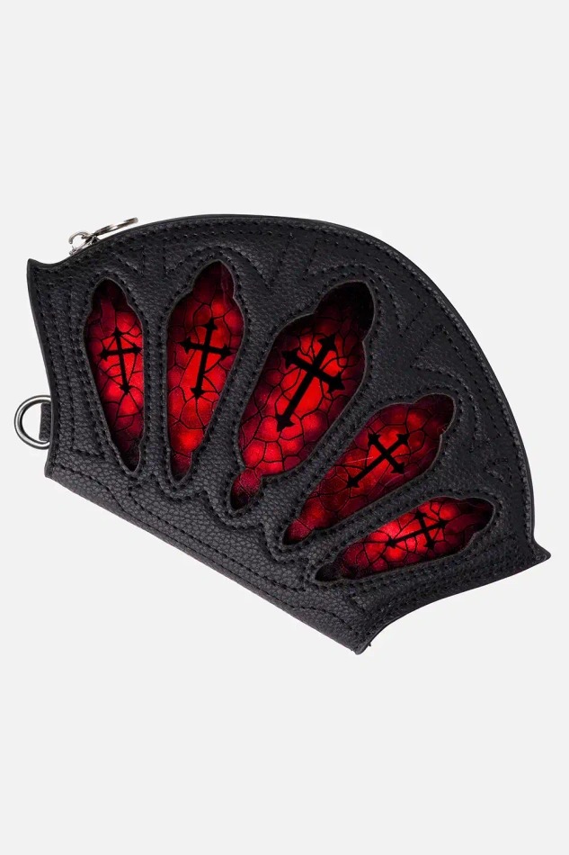 赤いステンドグラスが輝く大聖堂モチーフのゴシックウォレット