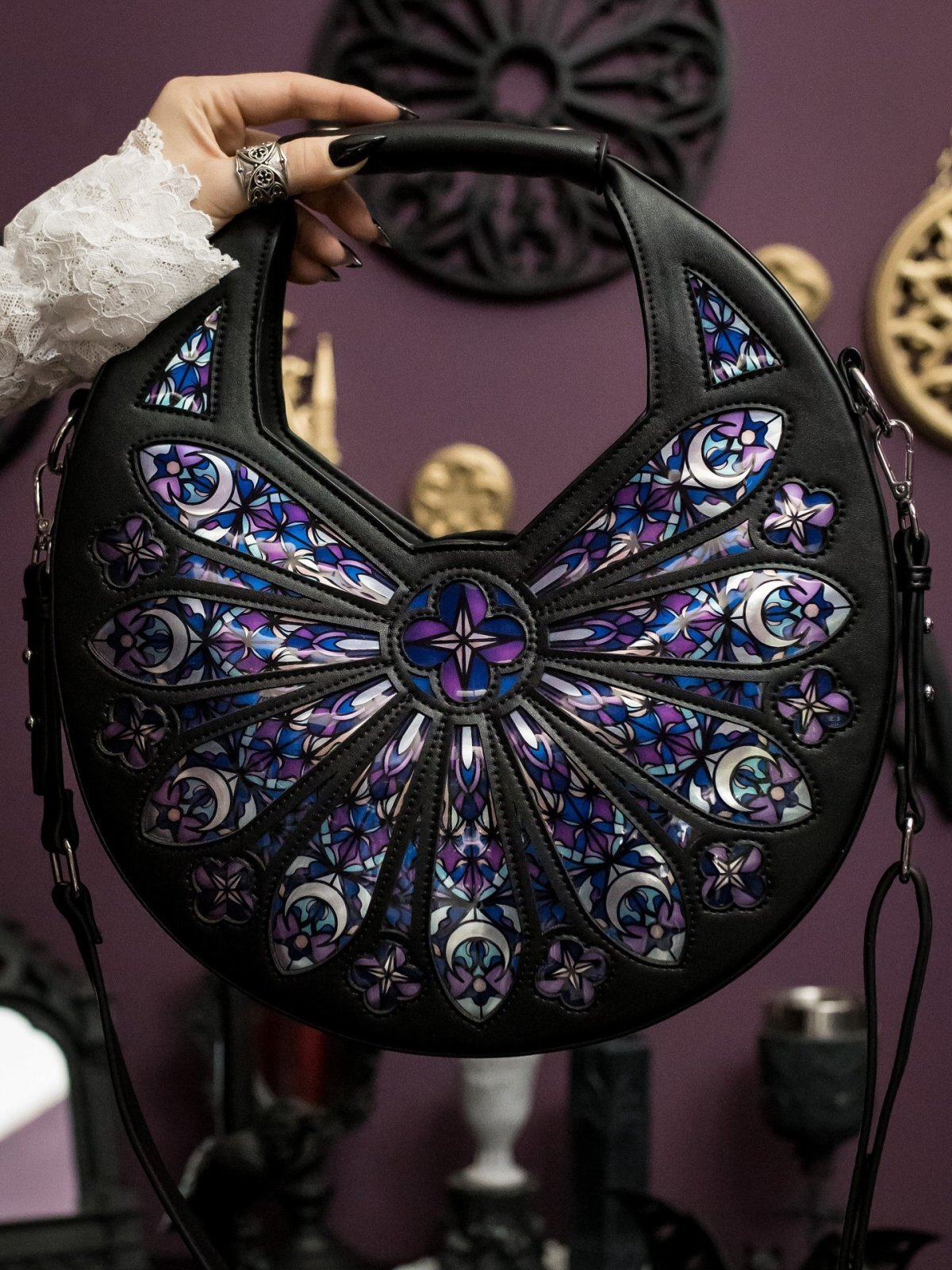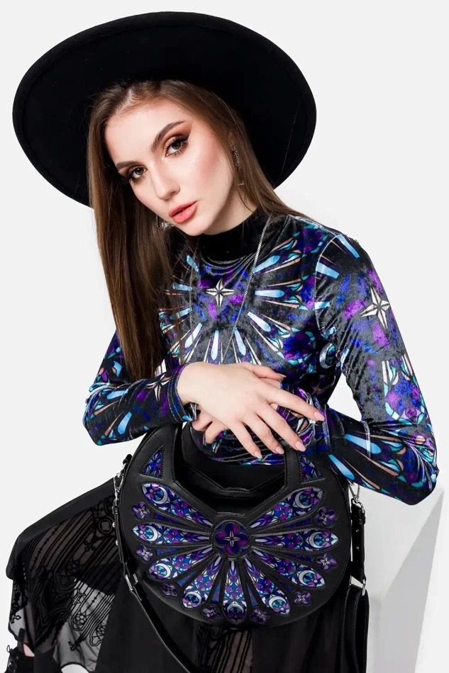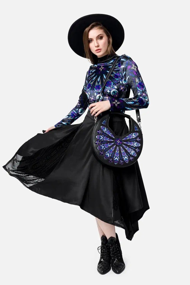 ローズウィンドウのステンドグラスをモチーフにしたゴシックショルダーバッグ