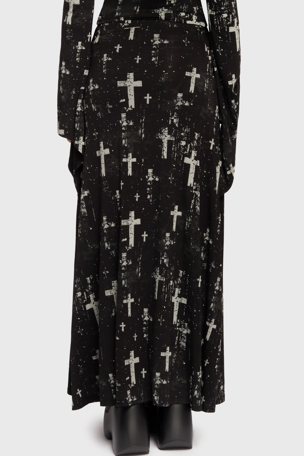 十字架モチーフのダークでエレガントなマキシ丈スカート。
