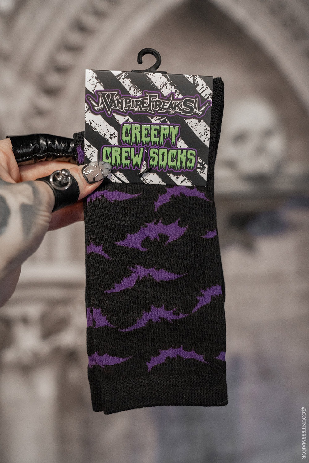Creepy Crew Socks / Purple Bats / ソックス【VampireFreaks】 [VFSK2003-CREW]