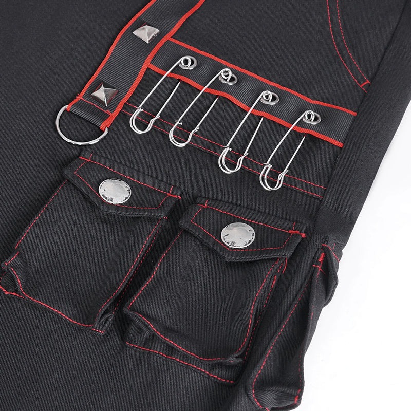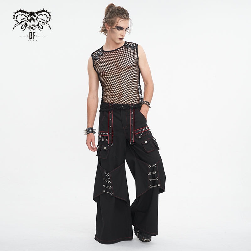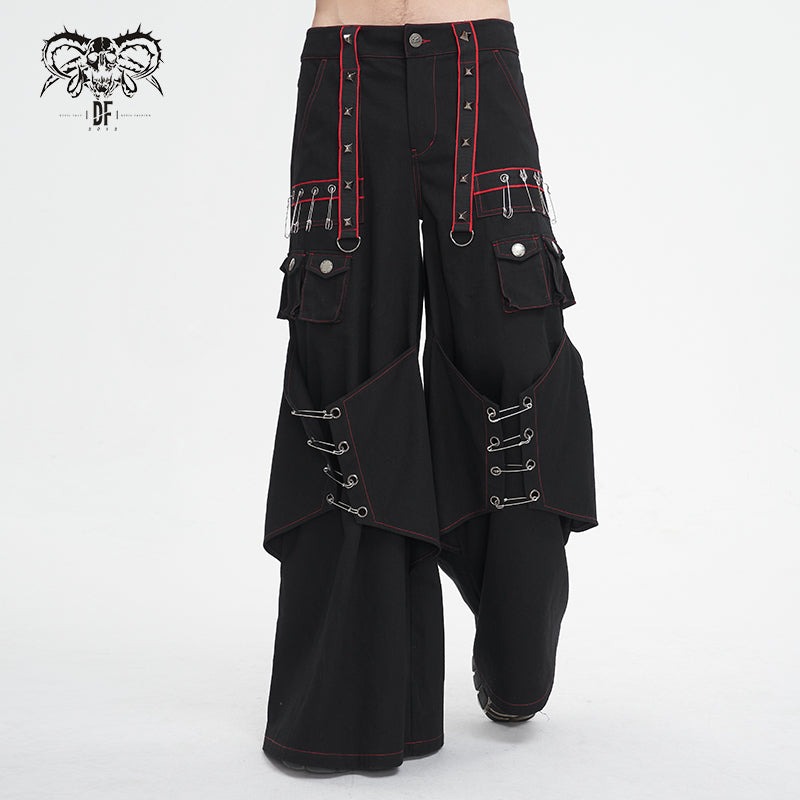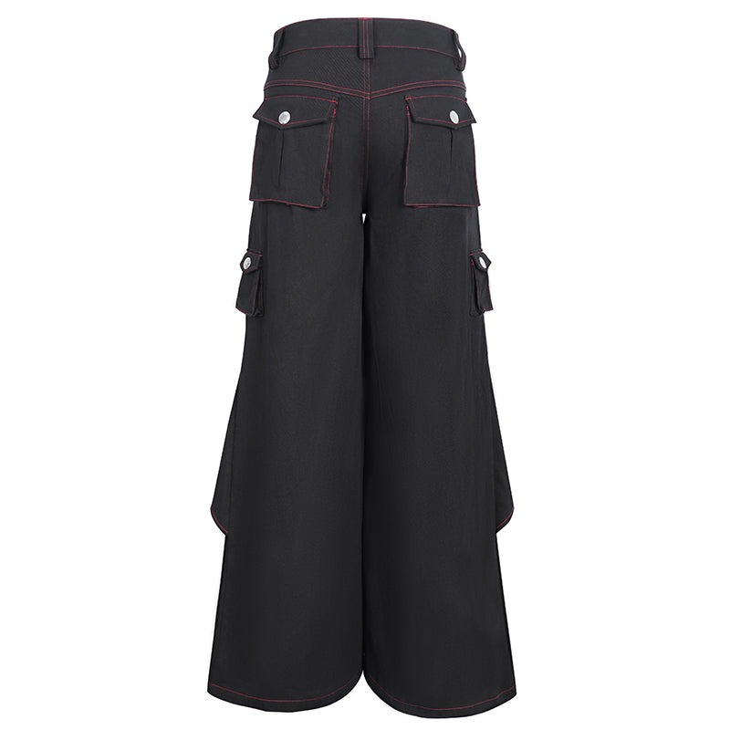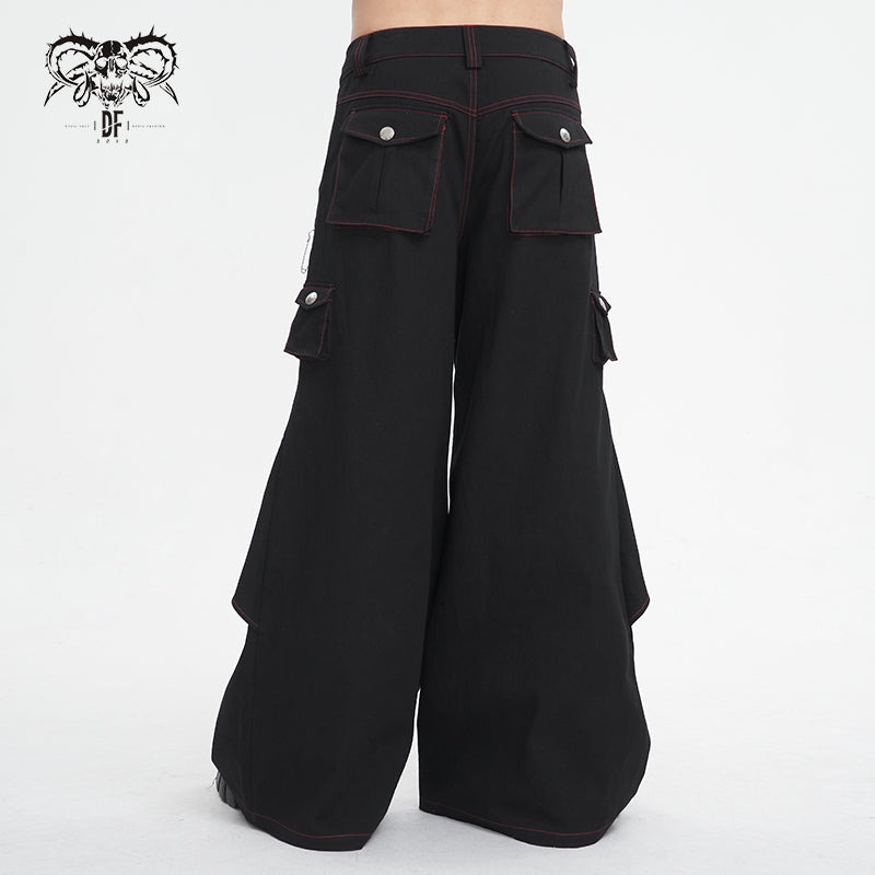 【Mens】Twill material contrasting red thick thread wide leg/ ワイドパンツ【Devil Fashion】 [PT245]