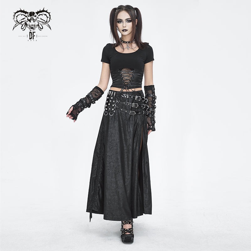 Stretchy glazed /レザーロングスカート【Devil Fashion】 [SKT196]