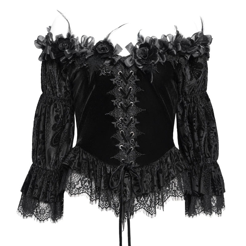 Black Off-shoulder three-quarter sleeve / ブラウス【Devil Fashion】 [ETT04001]