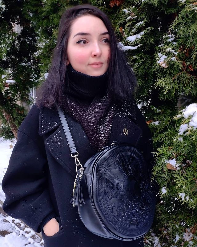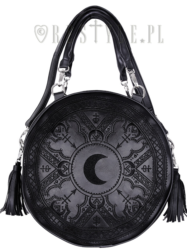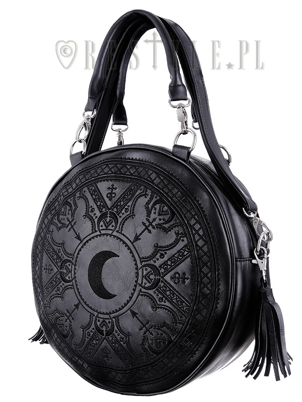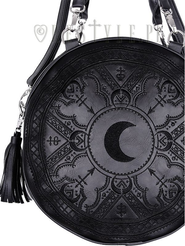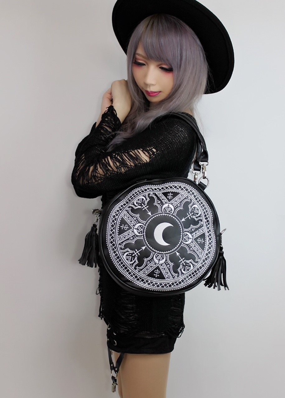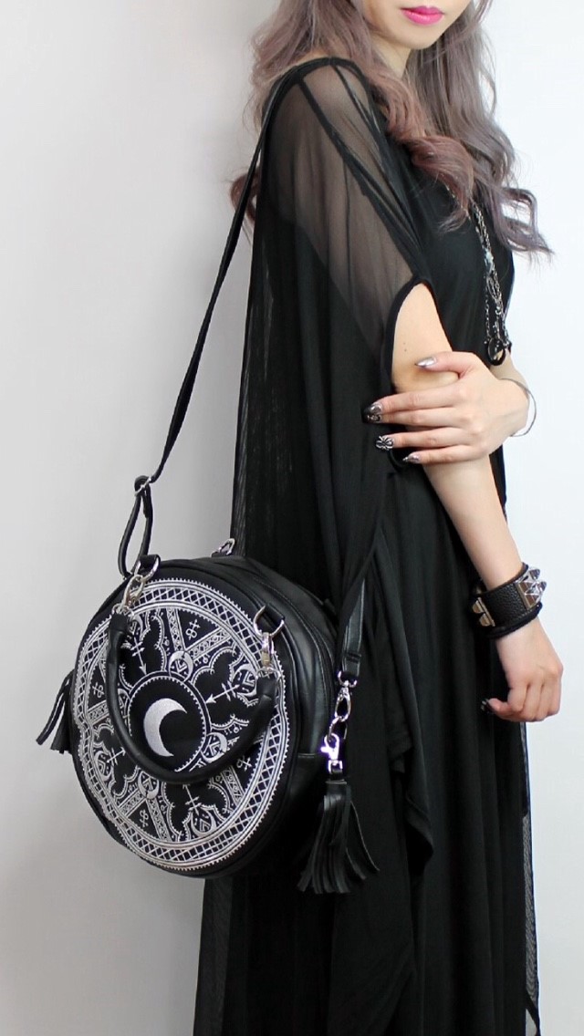錬金術のシンボルと三日月をあしらったユニークなヘナデザインラウンドバッグ!