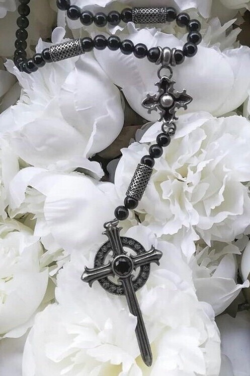 ビーズ装飾が印象的なブラックロザリオネックレス。