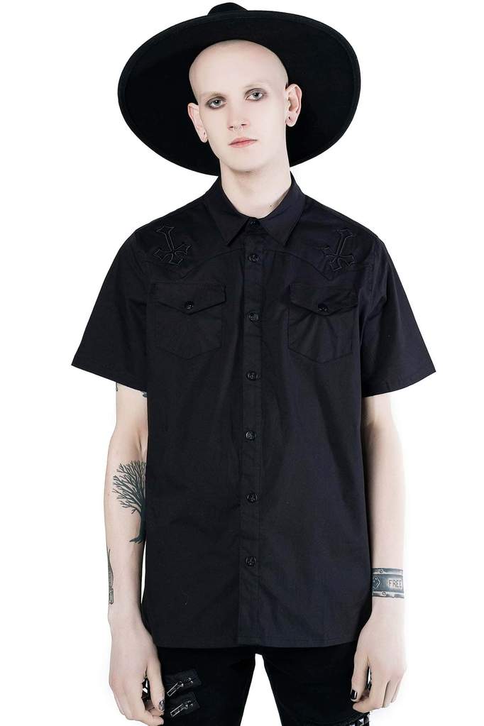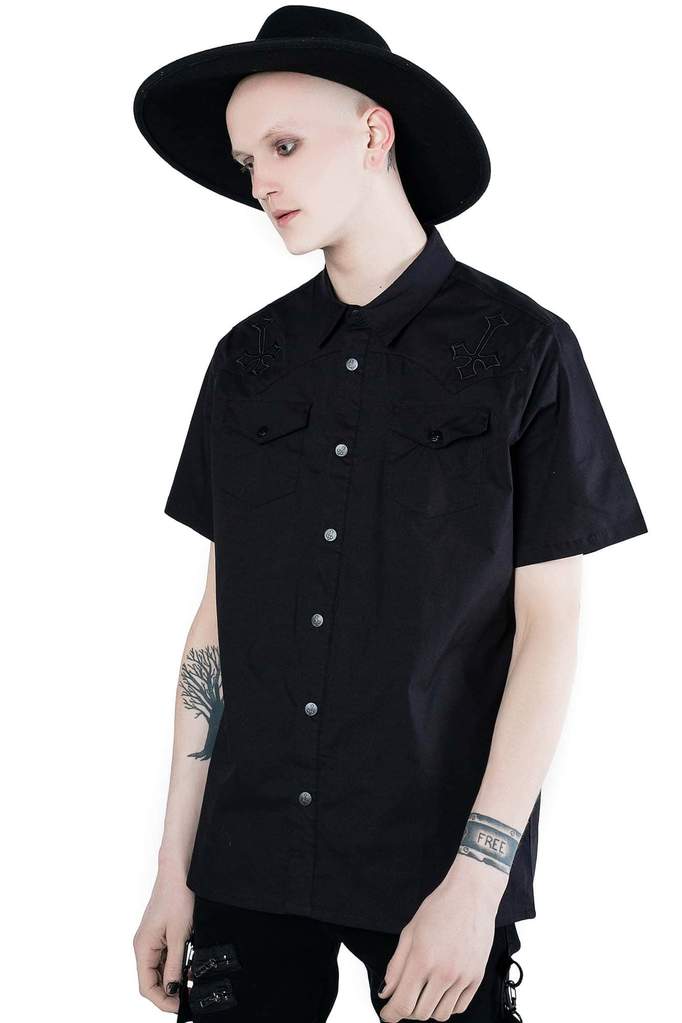 逆十字の刺繍がアクセントなゴシックシャツ!