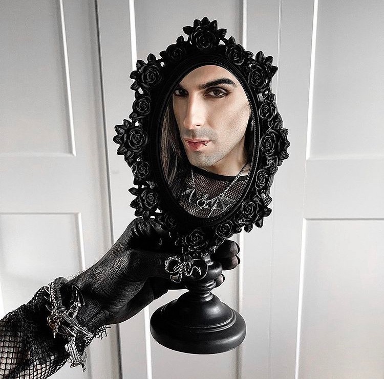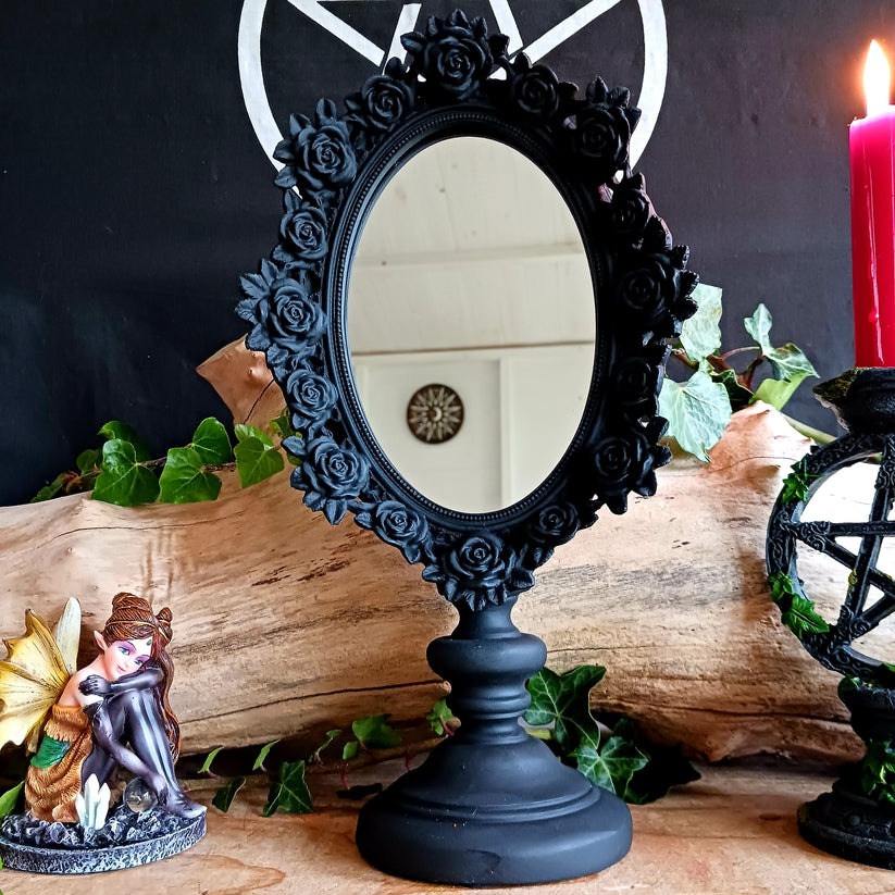 黒薔薇のゴシックな卓上ミラー