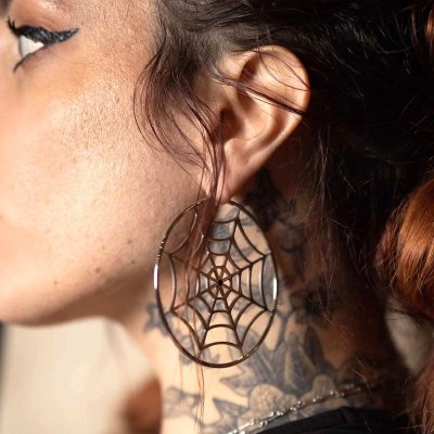 ブラックの蜘蛛の巣フープピアス♪